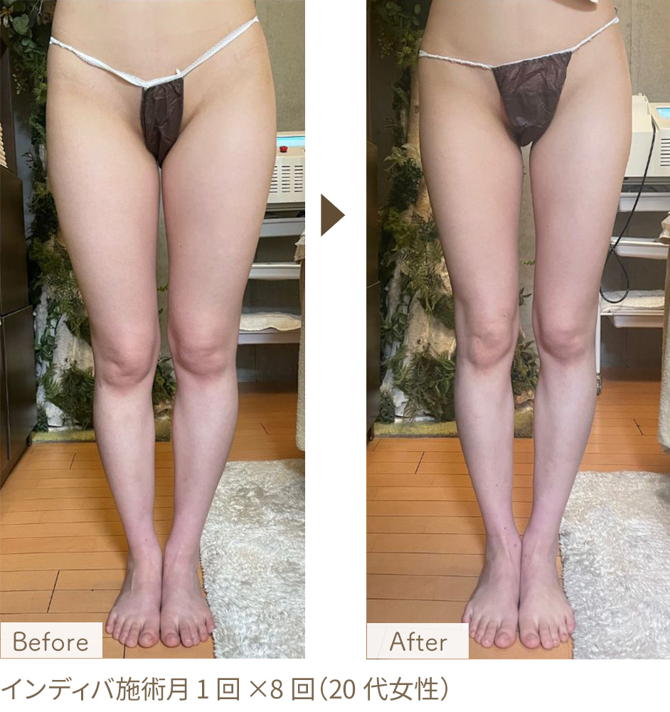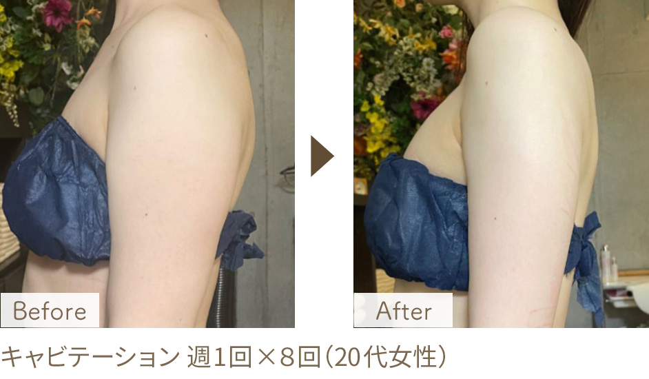1回の施術でもスッキリ感や肌の引き締まりを感じられる方も多くいらっしゃいます。脂肪の厚みやサイズ感の変化を目指す場合は、週1回のペースで約3ヶ月(12回)を目安に継続されることをおすすめしております。