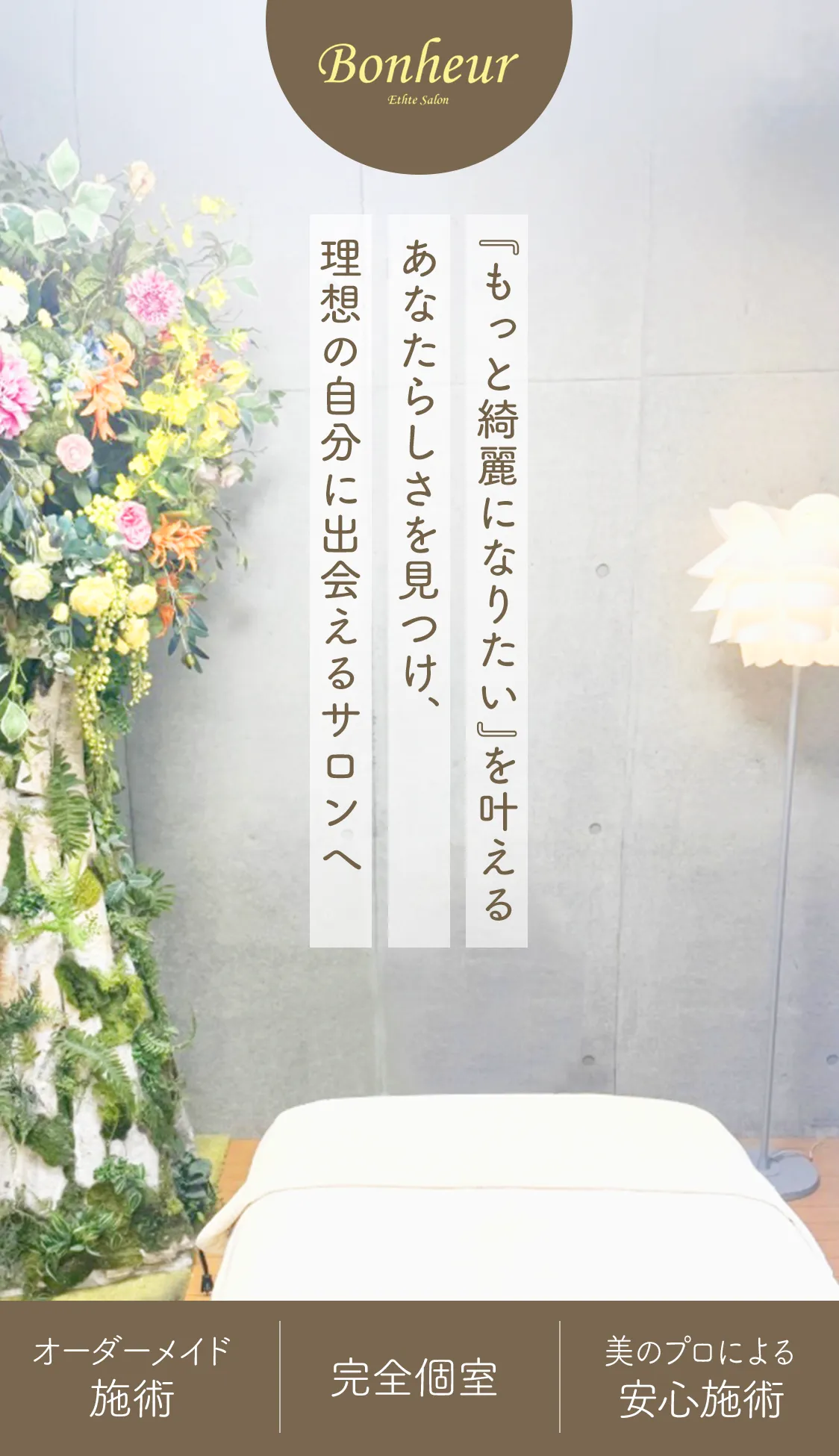 他のお客様とすれ違うことのない完全プライベート空間。快適な店内でゆっくりおくつろぎいただけます。無理な勧誘や販売は一切ございません
